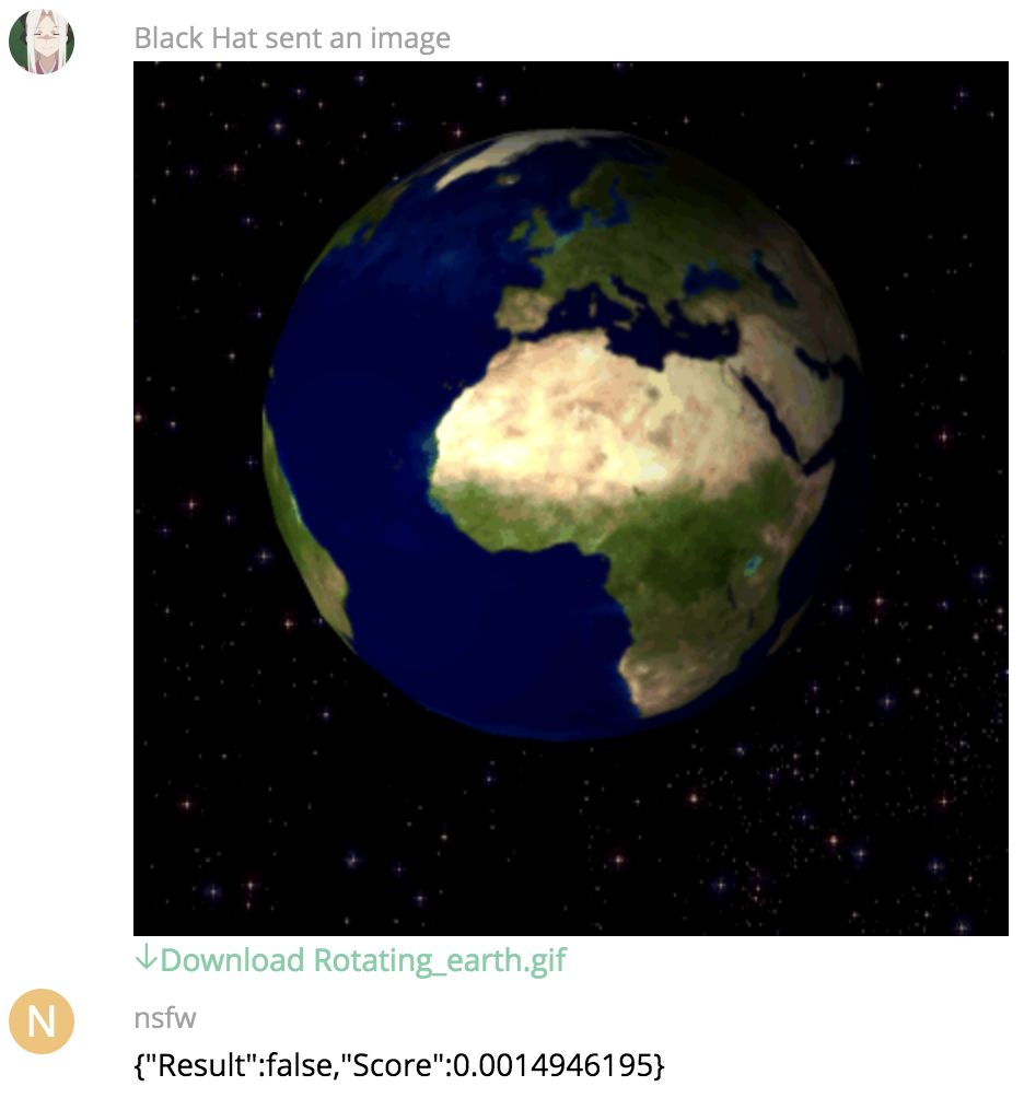 Black Hat is often found working on Spectral (previously 'Matrique'.) This week, he has been building @nsfw:encom.eu.org, which is a bot designed to give scores for how likely an image should be classified as NSFW. It's a simple mechanism, you give it an image, it gives you a JSON object with the result. For example: